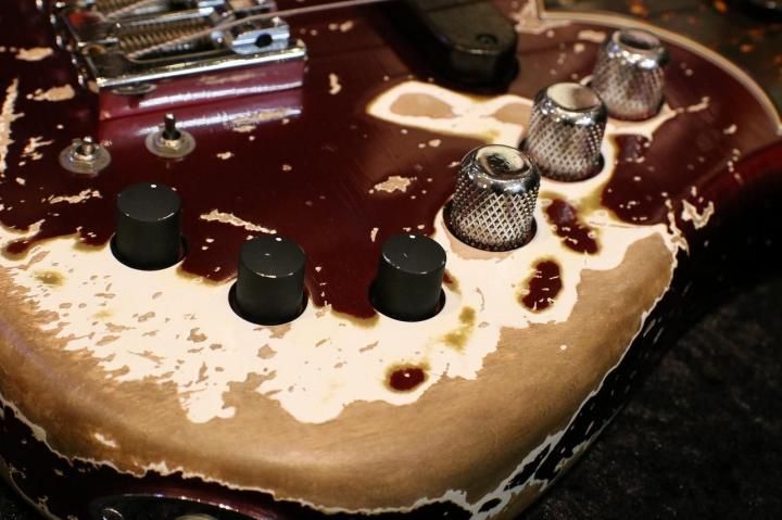 今回入荷したのは5弦モデルでラッカーフィニッシュ、そしてド迫力のエイジングがされた一本です。