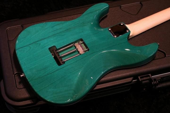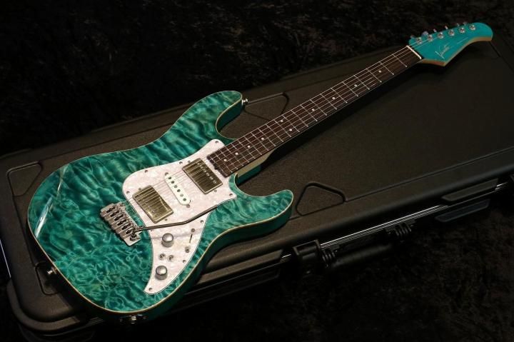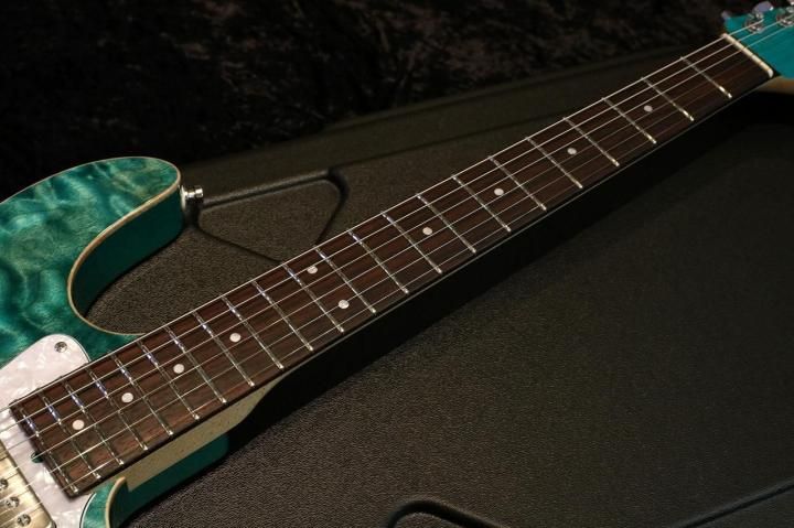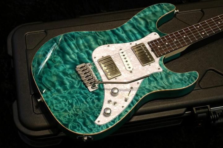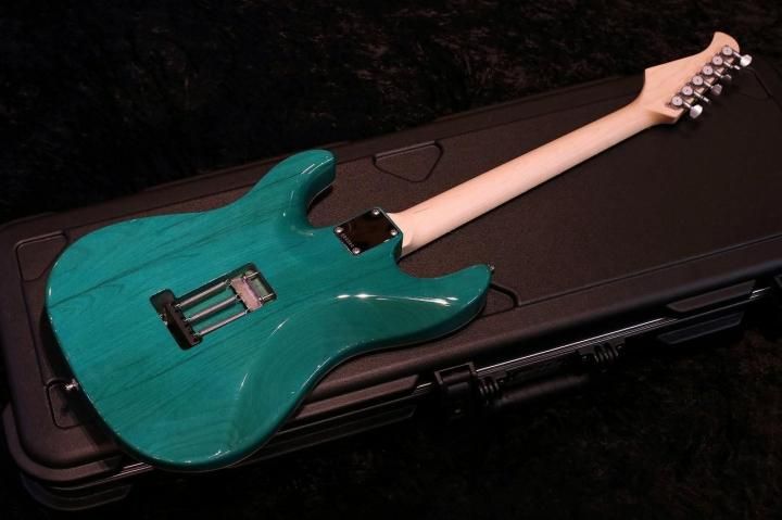 こちらはDark Aqua Blueと名付けられた鮮やかなトランスブルーカラーに非常にワイドで揺れるキルトメイプルが特徴的です。